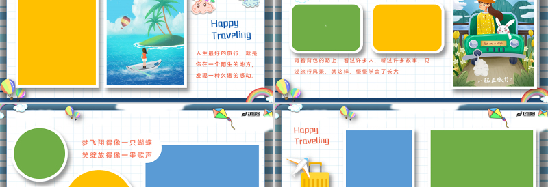 原創(chuàng)活潑清新假日旅行生活卡通相冊PPT模板-版權可商用