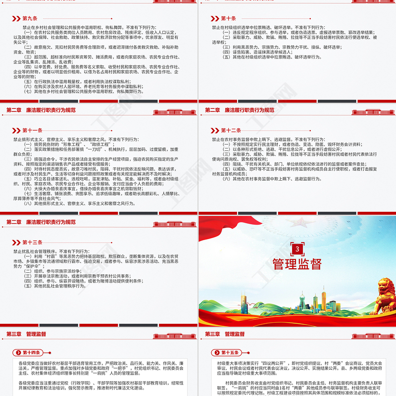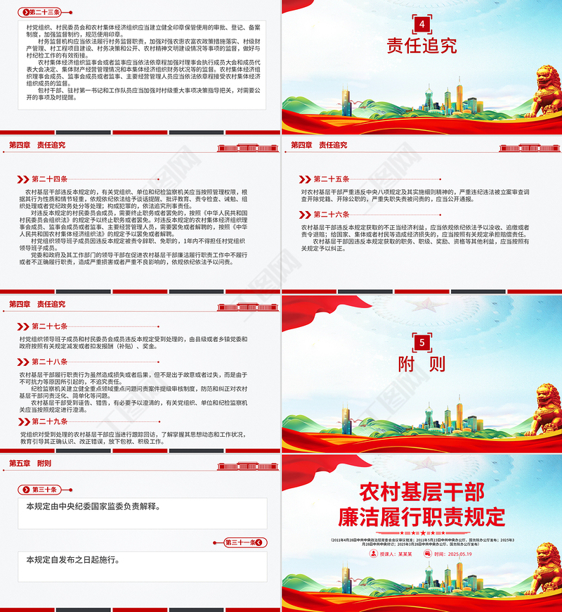 紅色簡潔《農村基層干部廉潔履行職責規定》PPT法律法規課件下載 Array