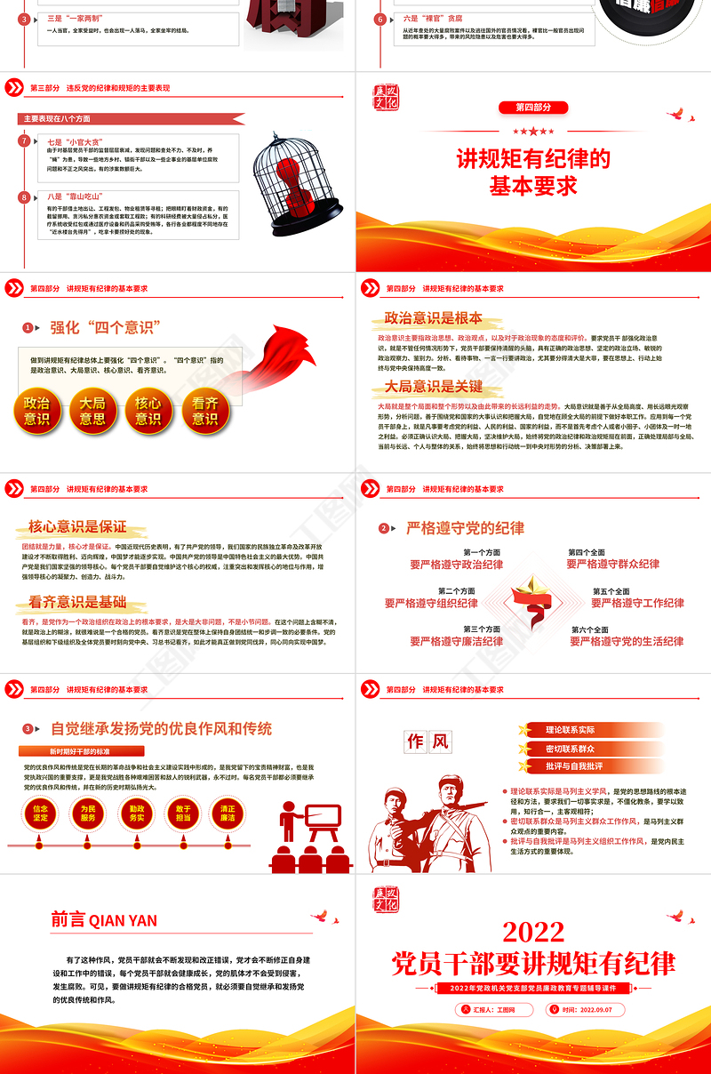 2022黨員干部要講規矩有紀律PPT紅色精美黨政機關黨支部專題廉政教育專題黨課課件 Array