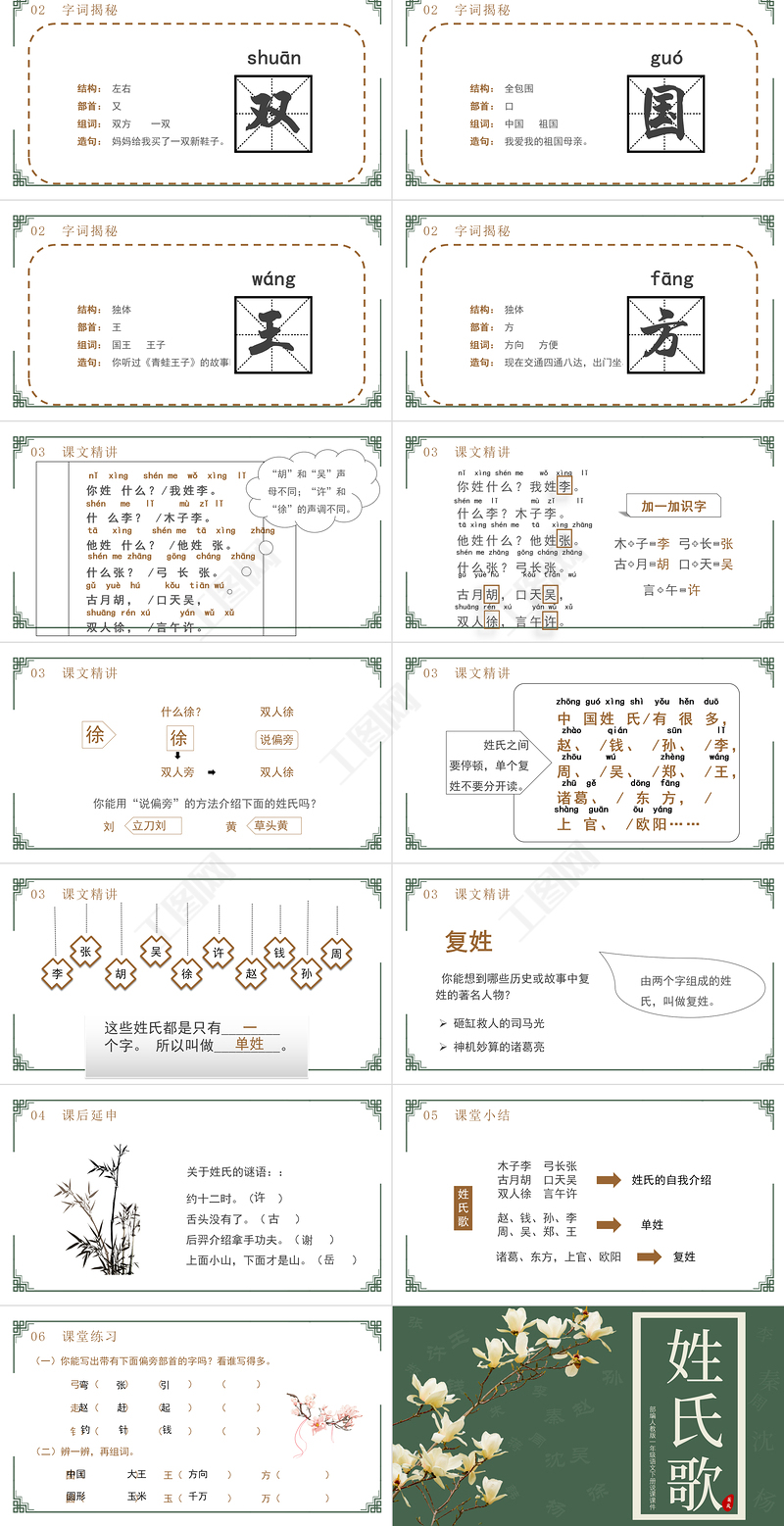 工圖網提供2022姓氏歌PPT中國風識字第2課小學一年級語文下冊部編人教版教學課件供會員免費下載。更多精彩黨課PPT素材,盡在工圖網。