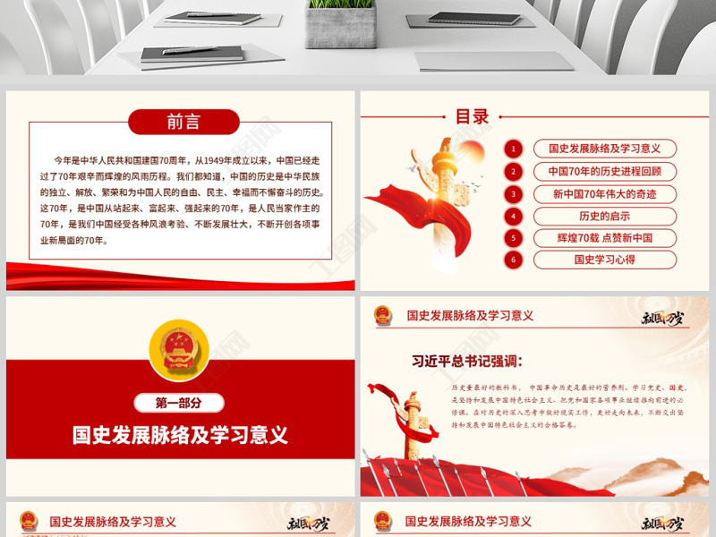 1目錄國史發展脈絡及學習意義2中國70年的歷史進程回顧3新中國70年偉大的奇跡4歷史的啟示5輝煌70載 點贊新中國延時符6國史學習心得