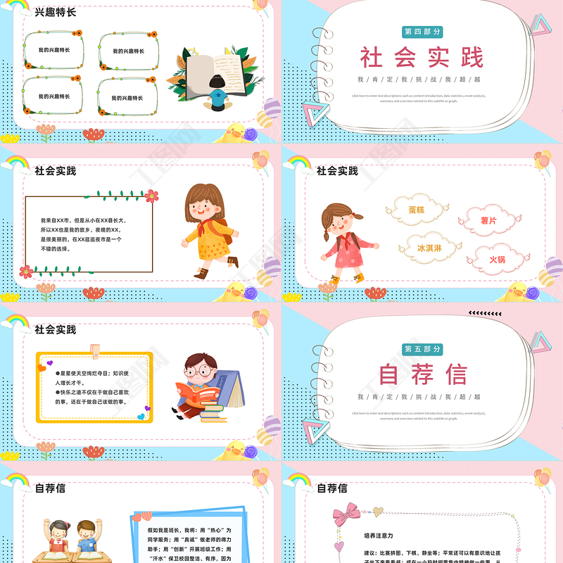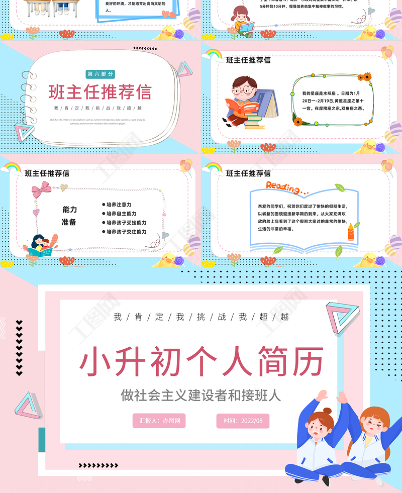 2022小升初個人簡歷PPT卡通風小升初個人簡歷介紹課件模板 Array
