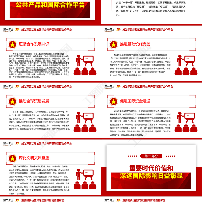 2023推動(dòng)共建“一帶一路”高質(zhì)量發(fā)展不斷取得新成效ppt紅色極簡風(fēng)共建“一帶一路”承載和平、發(fā)展、合作、共贏的時(shí)代價(jià)值黨建專題微黨課 Array