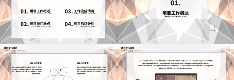 項(xiàng)目工作概述Project work overview請(qǐng)輸入你想輸入的文字,建議使用9-16號(hào)字體,請(qǐng)注意板式整潔。可直接復(fù)制替換此文本。請(qǐng)輸入你想輸入的文字,建議使用9-16號(hào)字體,請(qǐng)注意板式整潔。可直接復(fù)制替換此文本。輸入標(biāo)題文字請(qǐng)輸入你想輸入的文字,建議使用9-16號(hào)字體,請(qǐng)注意板式整潔。可直接復(fù)制替換此文本。請(qǐng)輸入你想輸入的文字,建議使用9-16號(hào)字體,請(qǐng)注意板式整潔。可直接復(fù)制替換此文本。輸入標(biāo)題文字請(qǐng)輸入你想輸入的文字,建議使用9-16號(hào)字體,請(qǐng)注意板式整潔。可直接復(fù)制替換此文本。請(qǐng)輸入你想輸入的文字,建議使用9-16號(hào)字體,請(qǐng)注意板式整潔。可直接復(fù)制替換此文本。輸入標(biāo)題文字請(qǐng)輸入你想輸入的文字,建議使用9-16號(hào)字體,請(qǐng)注意板式整潔。可直接復(fù)制替換此文本。請(qǐng)輸入你想輸入的文字,建議使用9-16號(hào)字體,請(qǐng)注意板式整潔。可直接復(fù)制替換此文本。輸入標(biāo)題文字