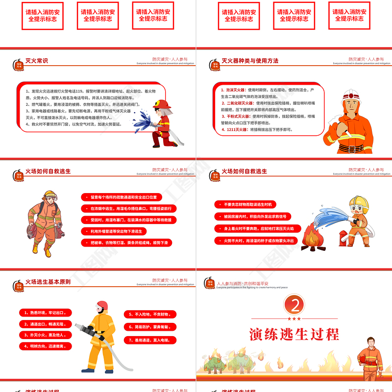 2023消防應急疏散演練PPT紅色精美風全面關注消防生命安全至上專題課件模板 Array
