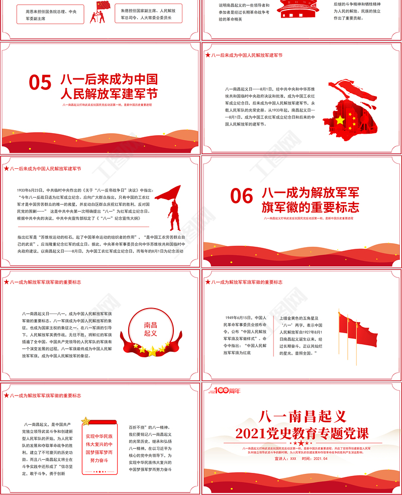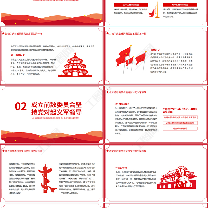 八一南昌起義PPT 2021黨史教育專題黨課 新中國歷史的重要進程 八一 精神 石破天驚第一槍 打響了武裝反抗國民黨反動派的第一槍 黨史課件 八一ppt揭開了中國共產黨獨立領導武裝斗爭和創建革命軍隊的序幕 建軍ppt 軍史ppt 鐵血鑄軍魂 部隊簡史 軍隊簡史 國防教育 人民解放軍 中國解放軍 部隊課件 部隊ppt 國防 軍隊國防 南昌 起義 建軍節 部隊 黨課 教育 南昌起義 部隊教育 部隊黨課 黨課教育 政治教育 Array