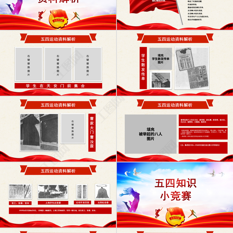 原創五四運動100周年五四精神中國夢青春夢PPT-版權可商用
