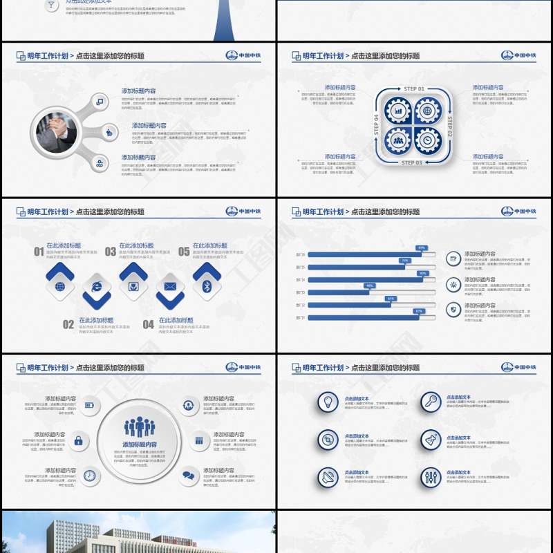 原創藍色大氣中國中鐵集團工作計劃動態PPT-版權可商用
