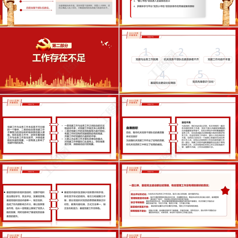 2022黨建工作總結(jié)計劃PPT紅色黨政風基層黨組織黨委黨支部工作總結(jié)專題黨課課件模板 Array
