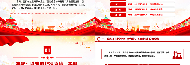 堅定信念恪守黨紀ppt大氣簡潔黨員干部學紀知紀明紀守紀黨課 Array