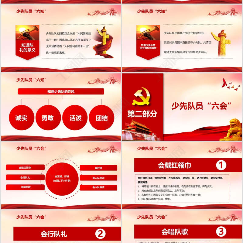ppt,模板,紅色,黨政版,少先隊(duì),少先隊(duì)員,先鋒隊(duì),認(rèn)識(shí),認(rèn)知,小學(xué)生,小學(xué),紅領(lǐng)巾,六知,六會(huì),一做 Array