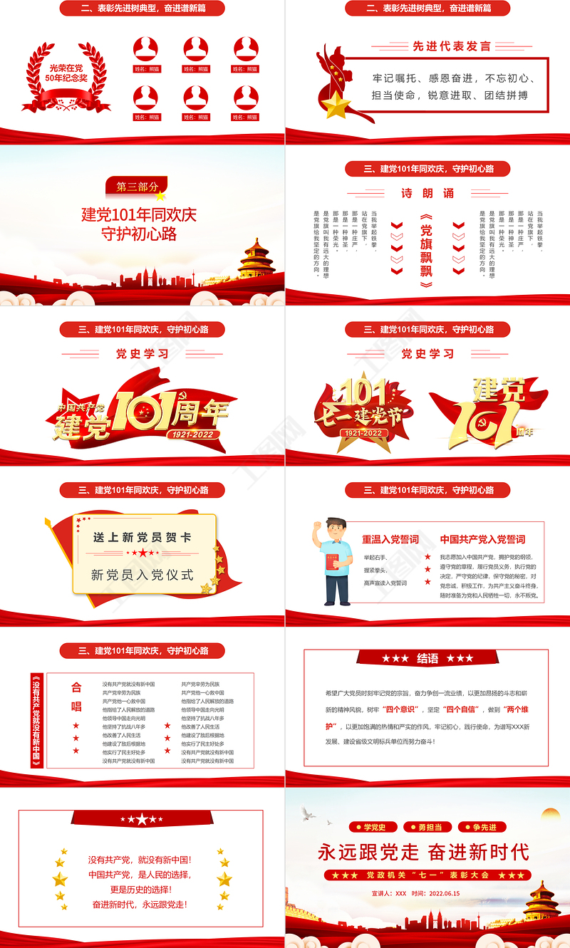 永遠(yuǎn)跟黨走奮進(jìn)新時(shí)代PPT紅色大氣風(fēng)黨政機(jī)關(guān)七一表彰大會(huì)專題課件模板