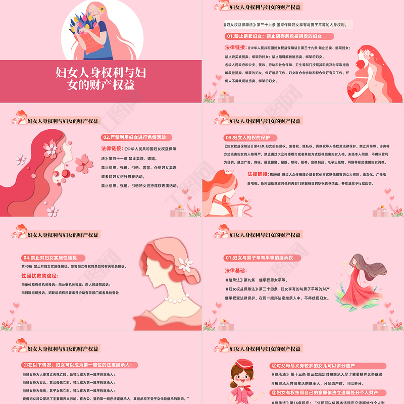 2023婦女法律知識講座PPT粉色剪紙風婦女法律知識培訓課件模板 Array