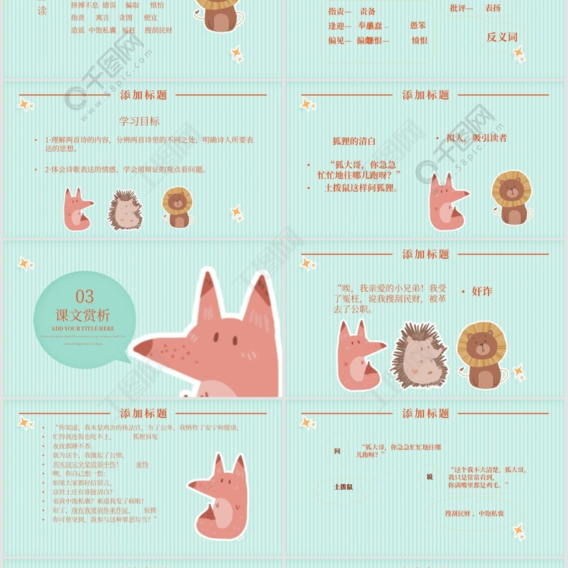 工圖網提供狐貍的清白(湘教版六年級上冊語文)供會員免費下載。更多精彩黨課PPT素材,盡在工圖網。