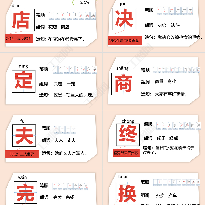 wán 筆順組詞完美 完成完造句:這幅畫畫得非常完美。巧記:“元”字戴帽子。