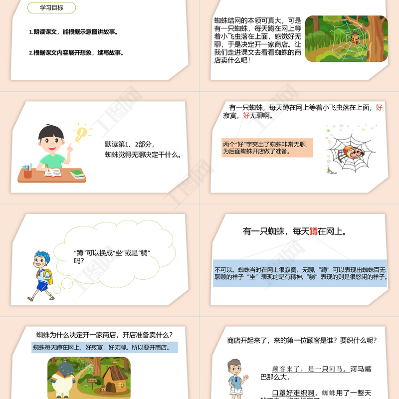 工圖網(wǎng)提供2022蜘蛛開店P(guān)PT課文第20課小學(xué)二年級語文下冊部編人教版教學(xué)課件供會員免費下載。更多精彩黨課PPT素材,盡在工圖網(wǎng)。