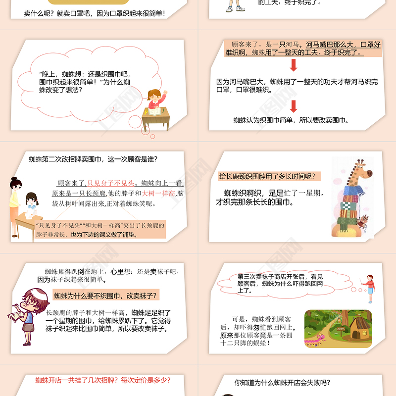 蜘蛛開店 口罩編織店 河馬 一整天板書設(shè)計 圍巾編織店 長頸鹿 一個星期 襪子編織店 蜈蚣 嚇跑了