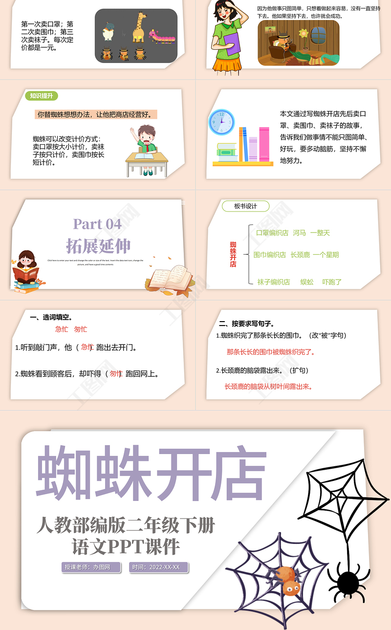授課老師:XXX時間:2022-XX-XX蜘人教部編版二年級下冊語文PPT課件開蛛店