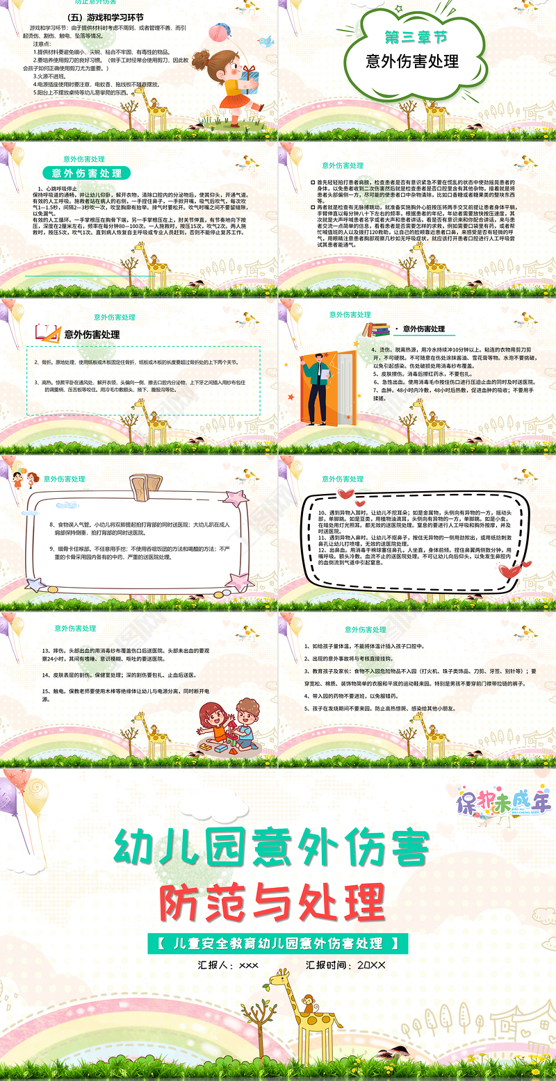 2021 幼兒園 意外傷害防范與處理 PPT 兒童安全教育 幼兒園意外傷害處理 專題課件 模板下載 Array