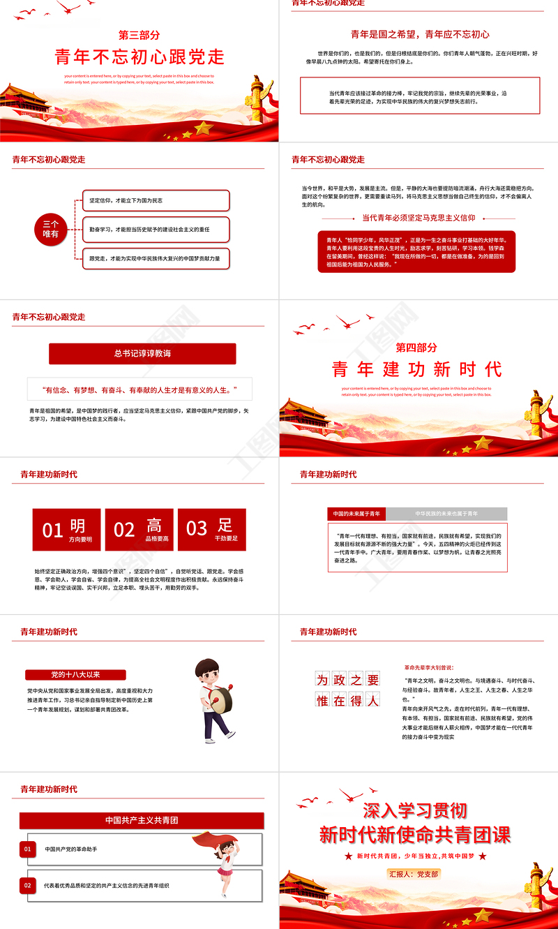 工圖網提供共青團團課PPT黨建風新時代新使命新青年不忘初心跟黨走建功新時代團員輔導課件供會員免費下載。更多精彩黨課PPT素材,盡在工圖網。