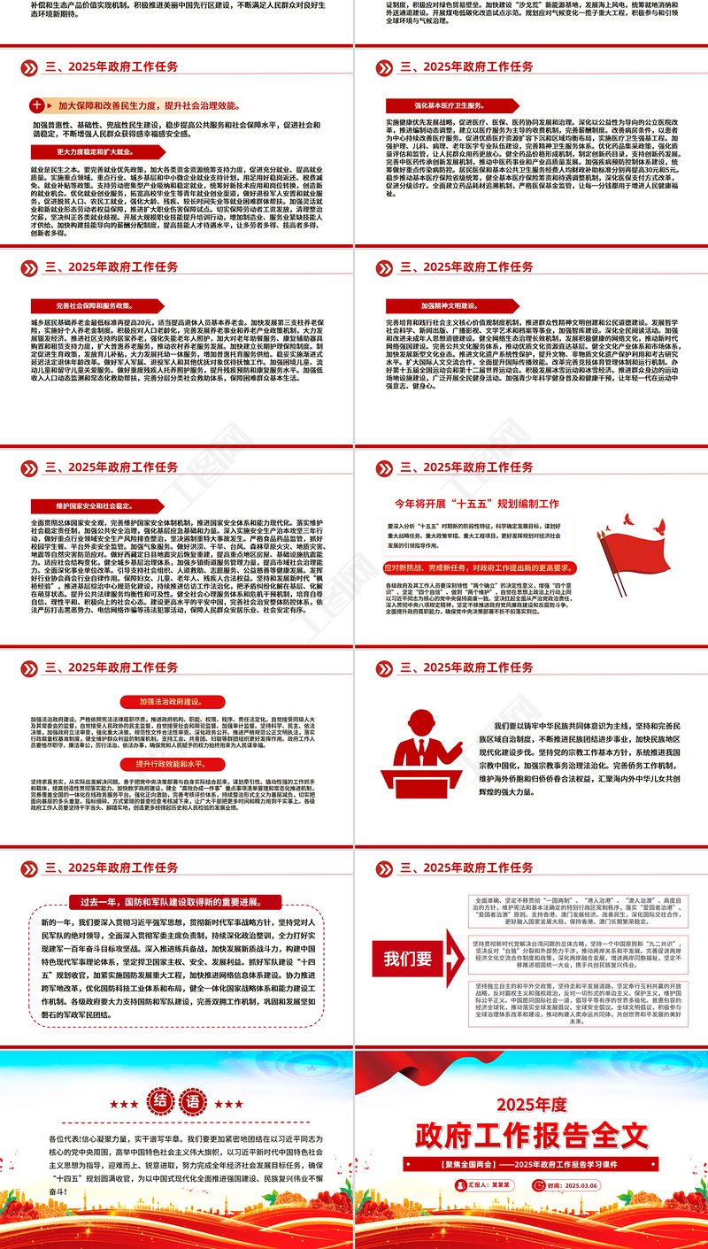 工圖網提供2025政府工作報告全文PPT黨政風全國兩會精神宣傳課件供會員免費下載。更多精彩黨課PPT素材,盡在工圖網。