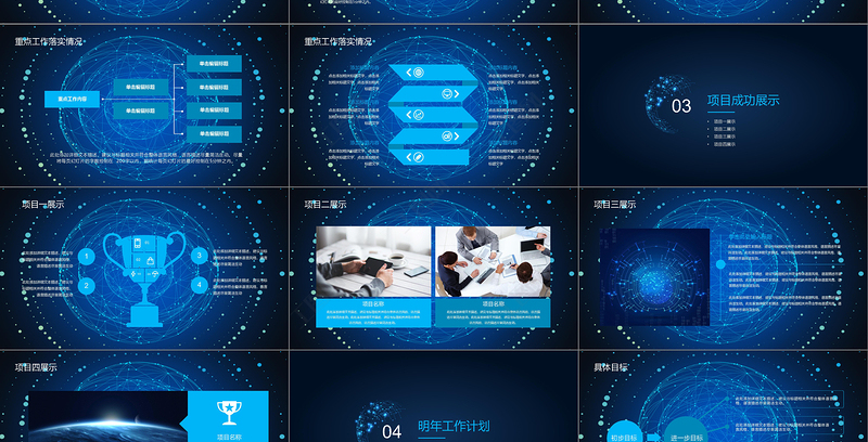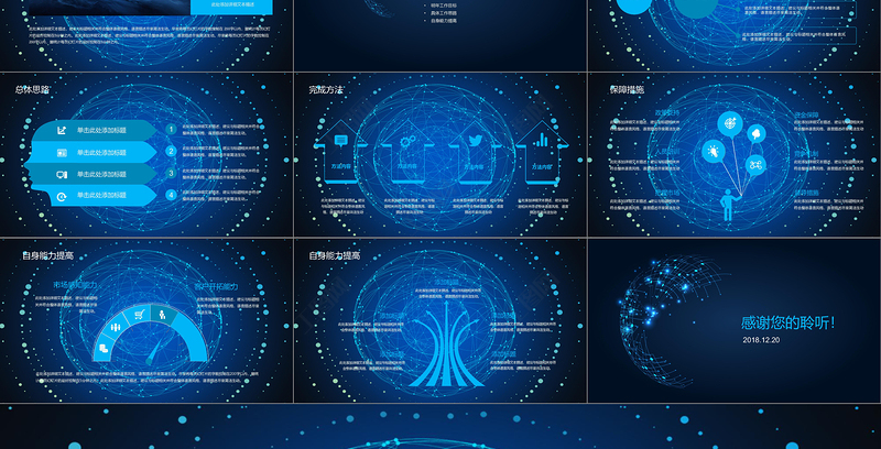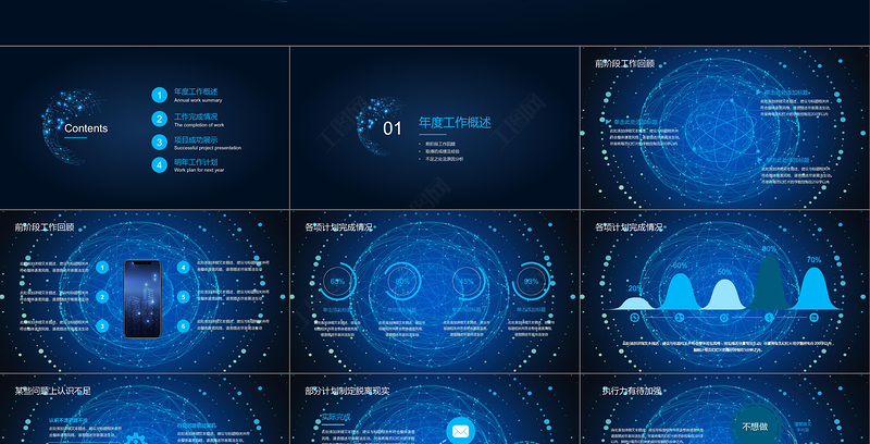 工作匯報ppt 年終總結ppt 2018 年 人事 半年總結 上半年 下半年 產品 銷售 項目 月 周 季 業績 工作 匯報 計劃 述職 報告 財務 PPT制作教程 活動 策劃 互聯網 科技 藍色 模板 藍色科技 藍色大氣 年終模板 Array