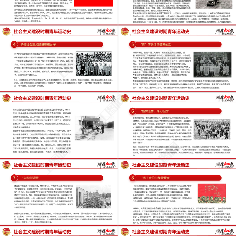 概括地講走進(jìn)社會(huì)主義建設(shè)時(shí)期,在百?gòu)U待興的新中國(guó)建設(shè)征程中,感受中國(guó)青年把青春獻(xiàn)給祖國(guó)的無(wú)悔奮斗!一個(gè)時(shí)代最為鮮明的特點(diǎn),莫過于改天換地,新舊交替。1949年10月1日被歷史定格,一個(gè)舊時(shí)代結(jié)束了,新的時(shí)代開始了。中華人民共和國(guó)的成立,開啟了中華民族偉大復(fù)興的歷史新紀(jì)元。廣大青年在中國(guó)共產(chǎn)黨的路線方針政策指引下,同全國(guó)人民一道,踏上了實(shí)施社會(huì)主義改造、建立社會(huì)主義制度、探索社會(huì)主義道路的新征程。這一時(shí)期的中國(guó)青年運(yùn)動(dòng)體現(xiàn)出鮮明的建設(shè)性特征。