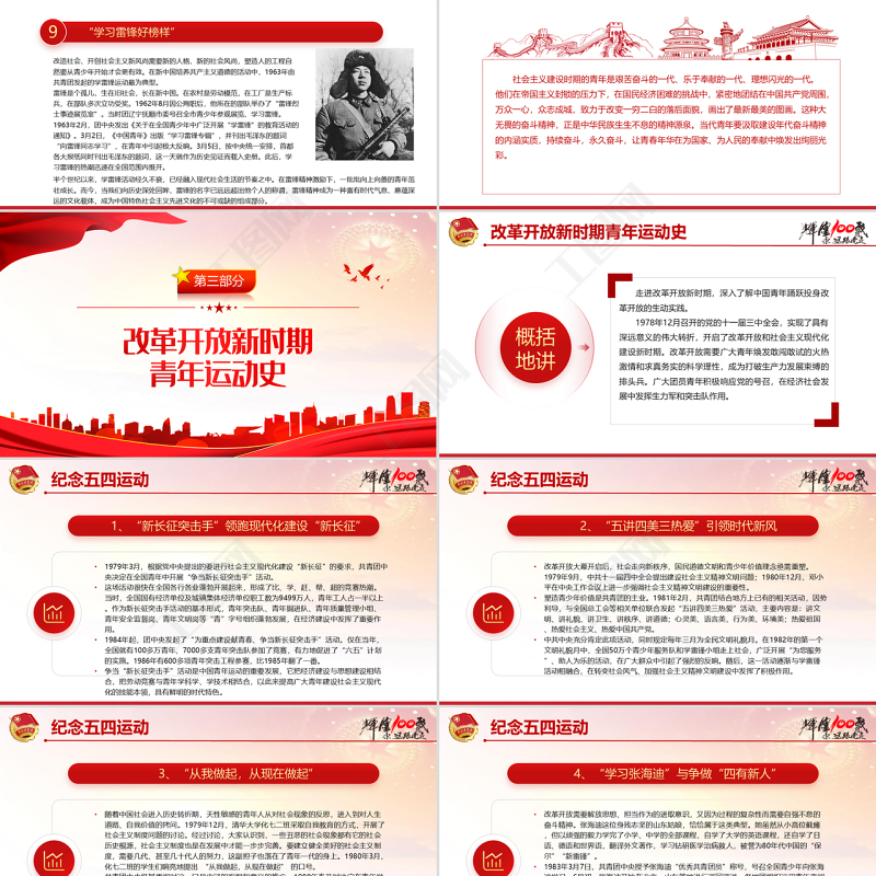 黨領(lǐng)導(dǎo)的青年運(yùn)動(dòng)史PPT紅色黨建風(fēng)中國(guó)共青團(tuán)成立100周年弘揚(yáng)五四精神揮灑熱血青春專題團(tuán)課 Array