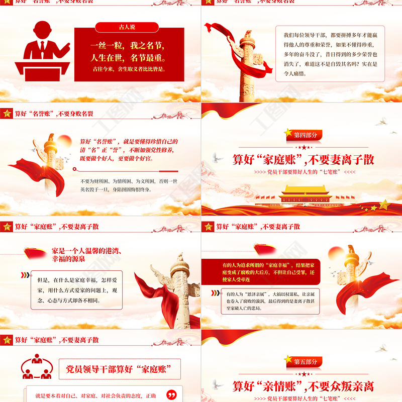 黨員干部要算好人生的“七筆賬”PPT紅色簡約風黨員干部學習教育專題黨課課件模板 Array
