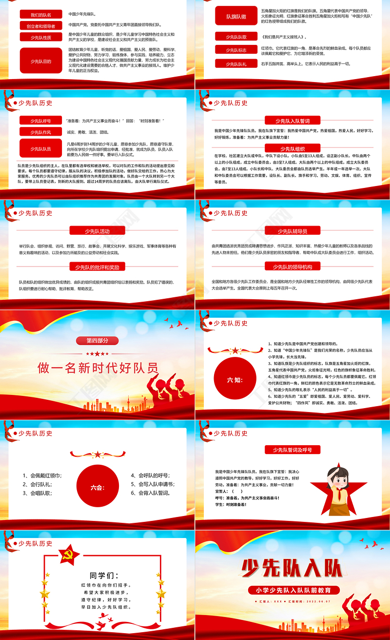 2022少先隊入隊PPT紅色大氣風小學少先隊入隊隊前教育主題課件模板