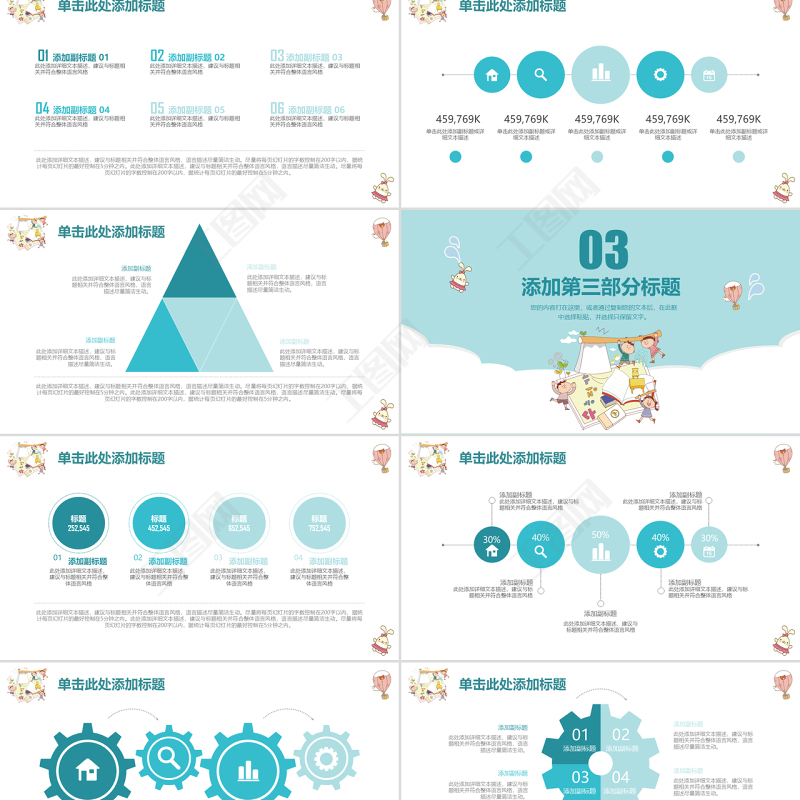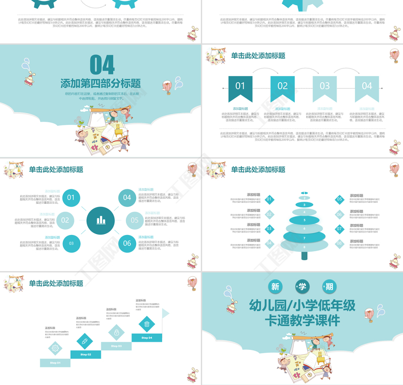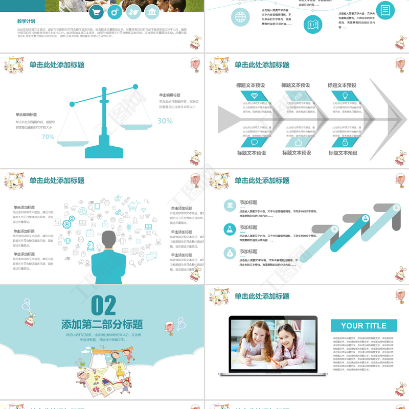 2022安全童行快樂成長PPT藍色卡通兒童貼紙風安全同行快樂成長幼兒園交通安全課件模板包含