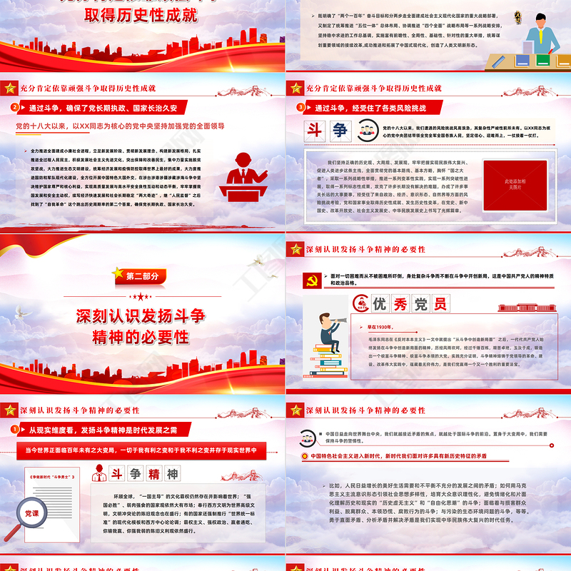 2022爭做新時代斗爭勇士打開事業發展新天地PPT黨政黨建風黨支部黨員干部黨史學習教育專題黨建黨課課件模板下載 Array