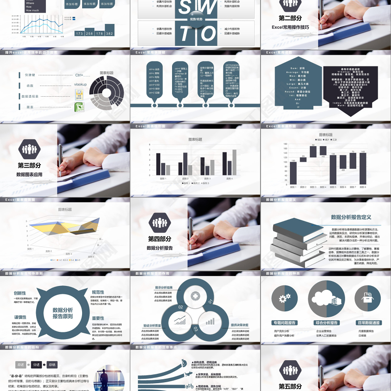 2019年全新財務數據分析PPT數據分析報表工作匯報PPT模板幻燈片包含