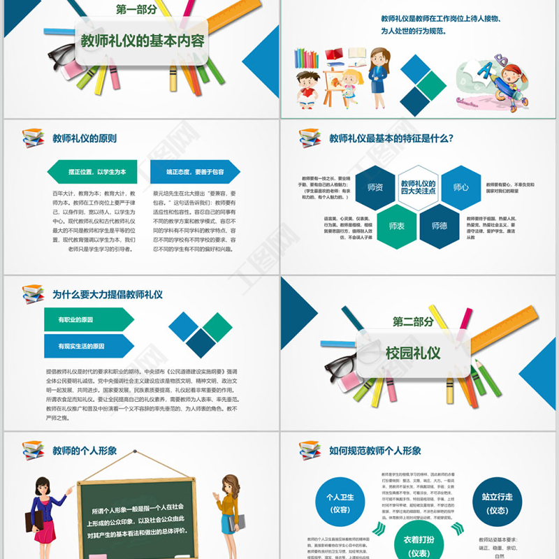 工圖網提供原創學校教學老教師禮儀培訓教育課件PPT模板供會員免費下載。更多精彩黨課PPT素材,盡在工圖網。
