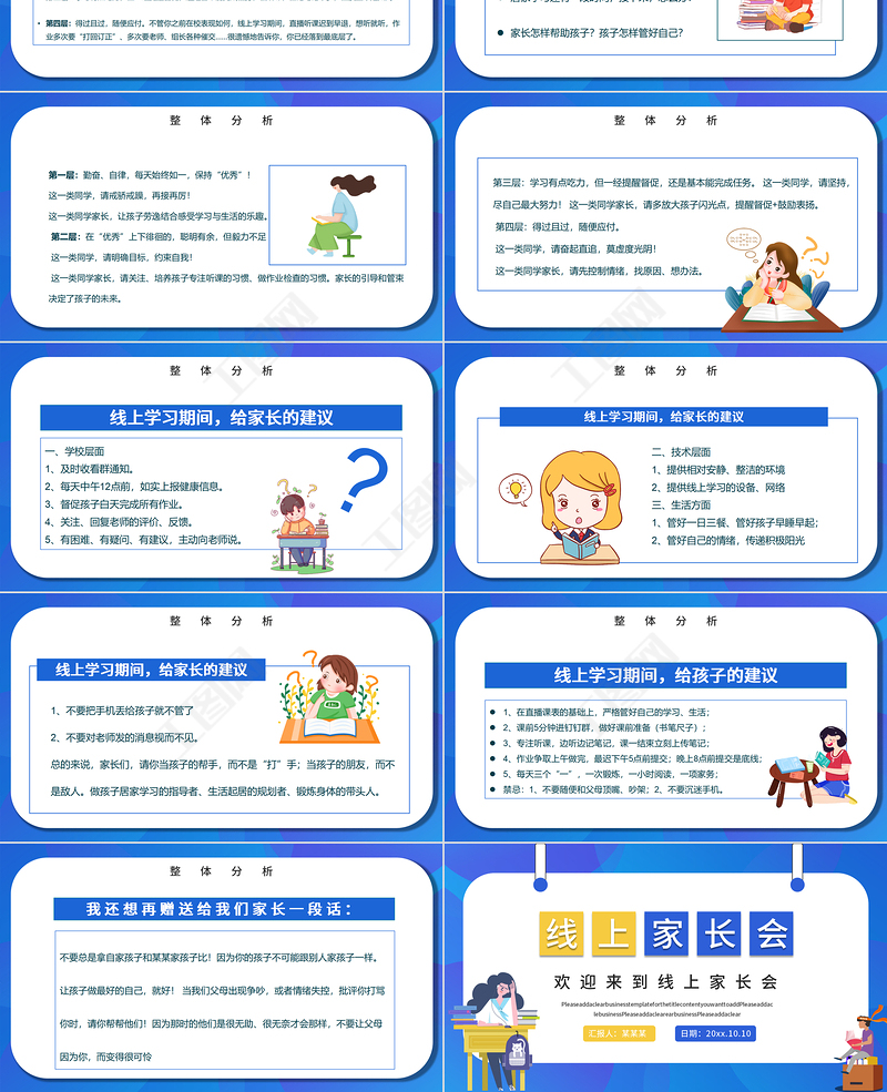 工圖網(wǎng)提供2022疫情線上家長會PPT卡通風(fēng)格中小學(xué)生疫情期間線上專題家長會課件模板供會員免費(fèi)下載。更多精彩黨課PPT素材,盡在工圖網(wǎng)。