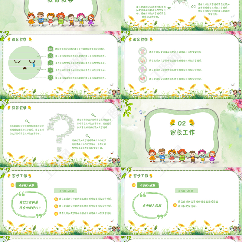 工圖網(wǎng)提供2023綠色小清新卡通幼兒園教師年終工作計(jì)劃總結(jié)PPT模板供會(huì)員免費(fèi)下載。更多精彩黨課PPT素材,盡在工圖網(wǎng)。