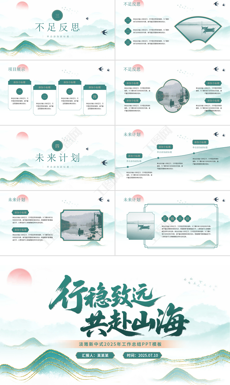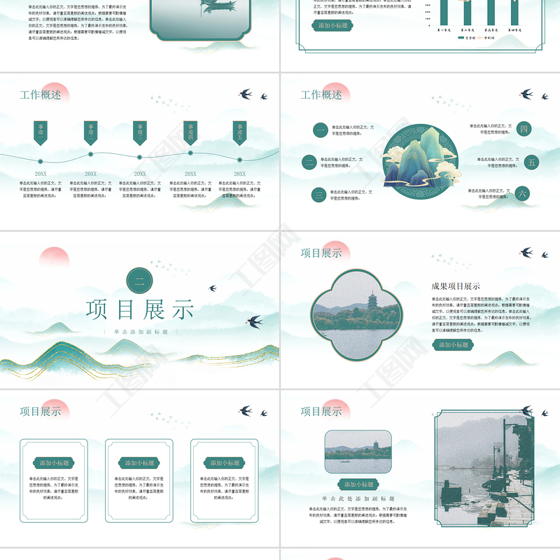 2024鈷綠色折紙底紋工作總結工作匯報PPT模板包含