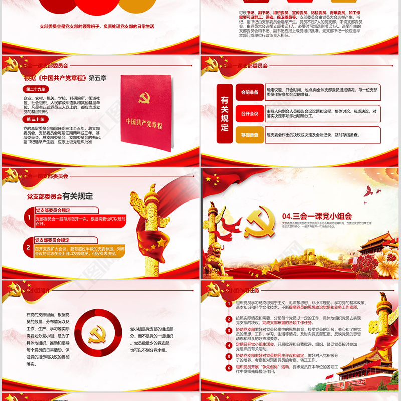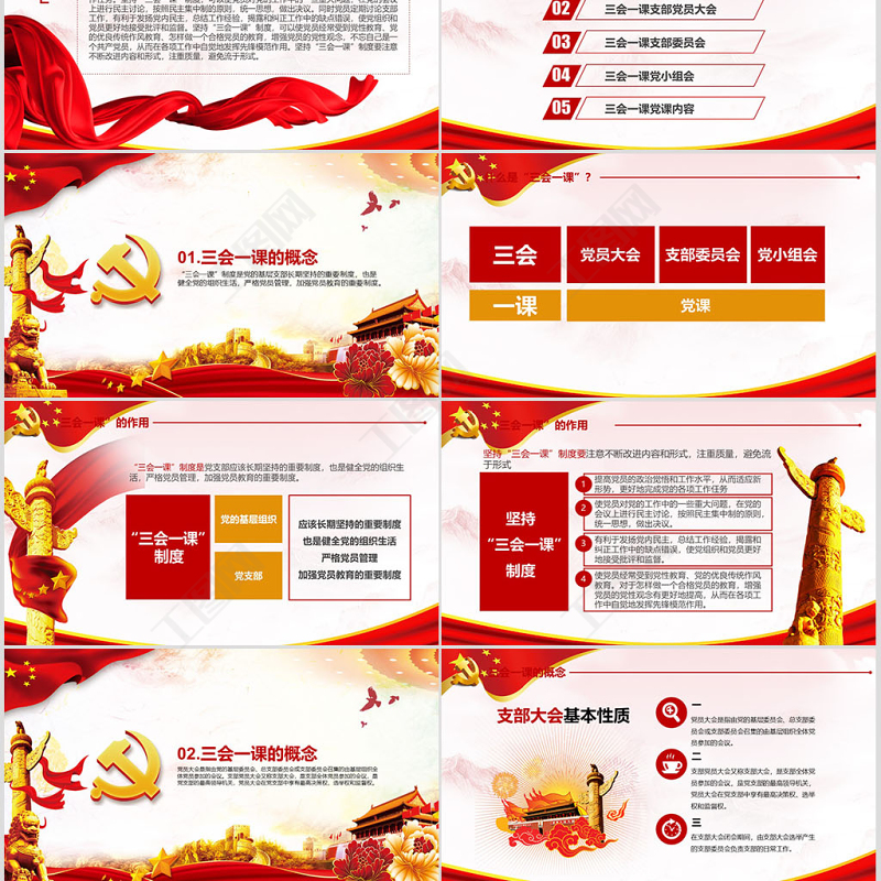 01.三會(huì)一課的概念“三會(huì)一課”制度是黨的基層支部長(zhǎng)期堅(jiān)持的重要制度,也是健全黨的組織生活,嚴(yán)格黨員管理,加強(qiáng)黨員教育的重要制度。