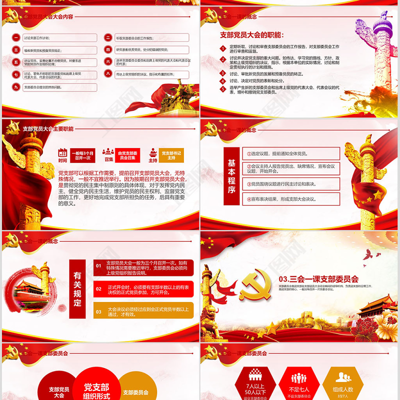 工圖網(wǎng)提供落實(shí)三會(huì)一課制度黨政教育微黨課PPT模板供會(huì)員免費(fèi)下載。更多精彩黨課PPT素材,盡在工圖網(wǎng)。