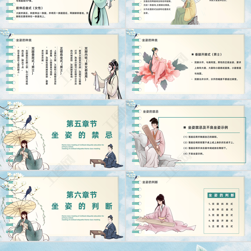 2023禮儀坐姿PPT中國風小學生文明禮儀教育主題班會課件模板下載 Array