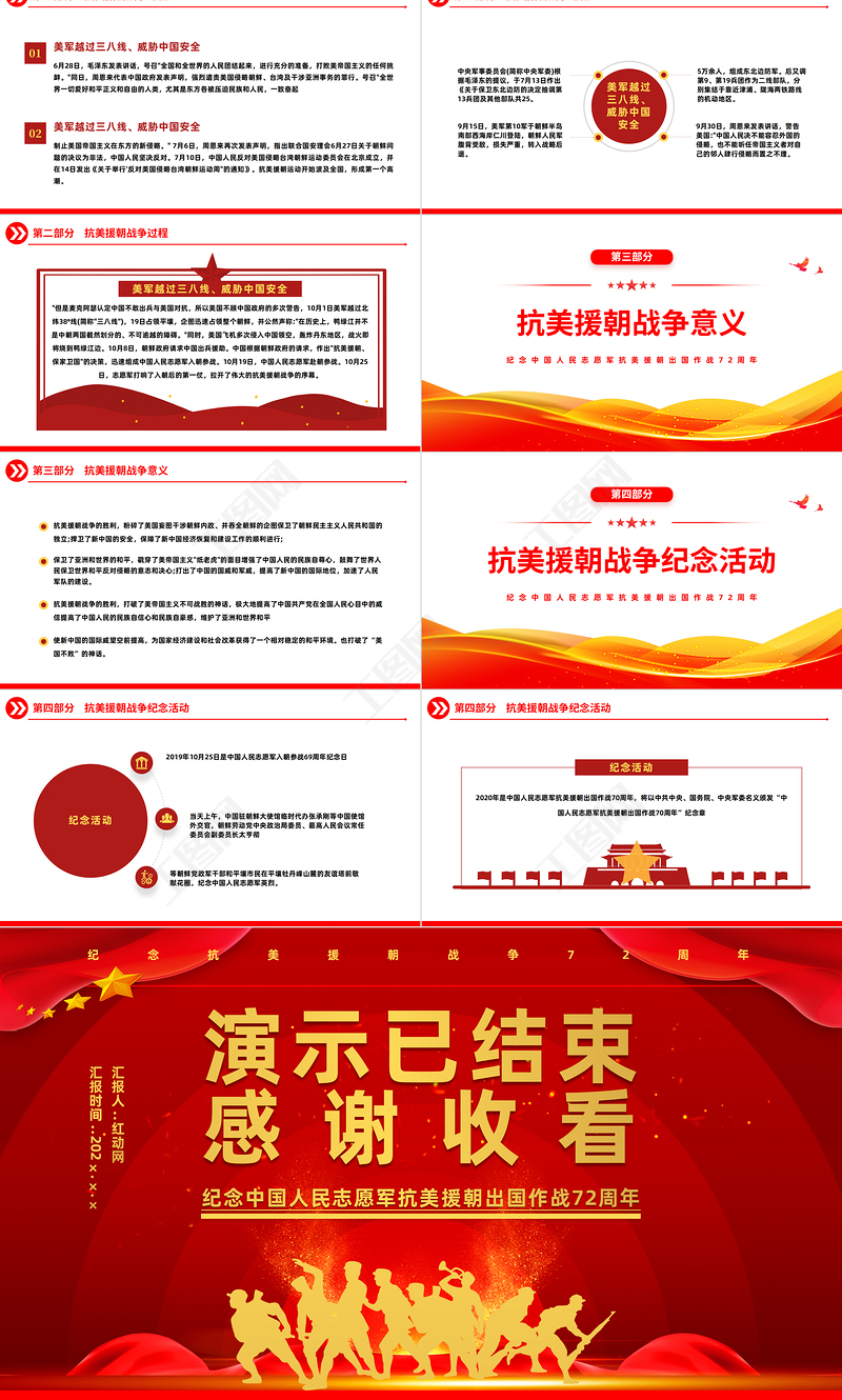 2022光輝的篇章不朽的豐碑PPT紅色大氣風紀念中國人民志愿軍抗美援朝出國作戰(zhàn)72周年主題課件模板