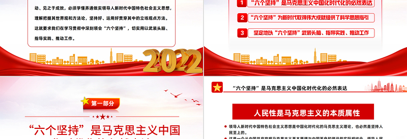 2022學習好領悟好運用好六個堅持PPT紅色精美風黨員干部學習教育專題黨課課件模板 Array