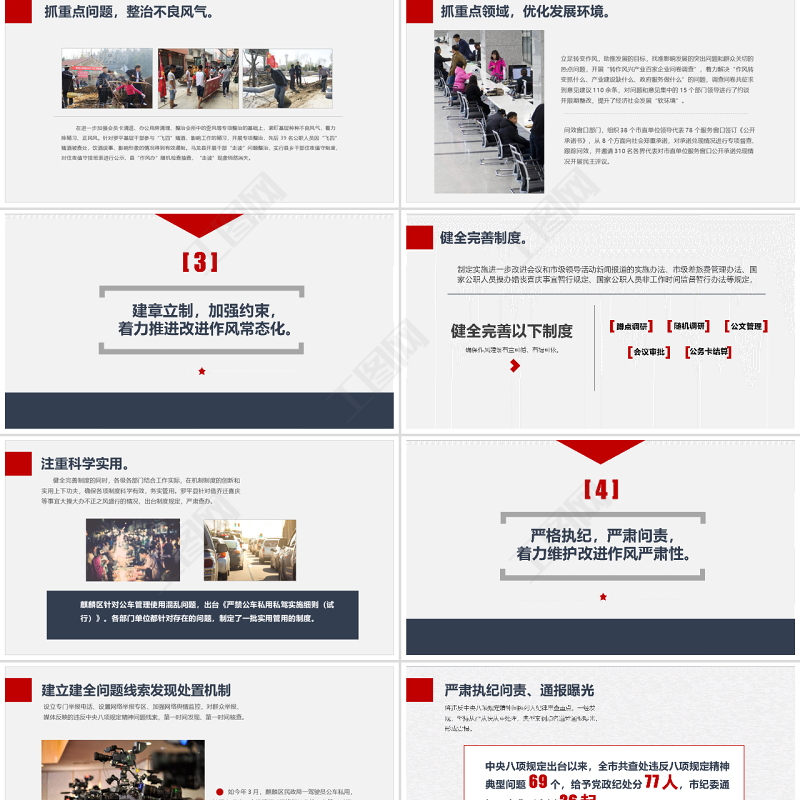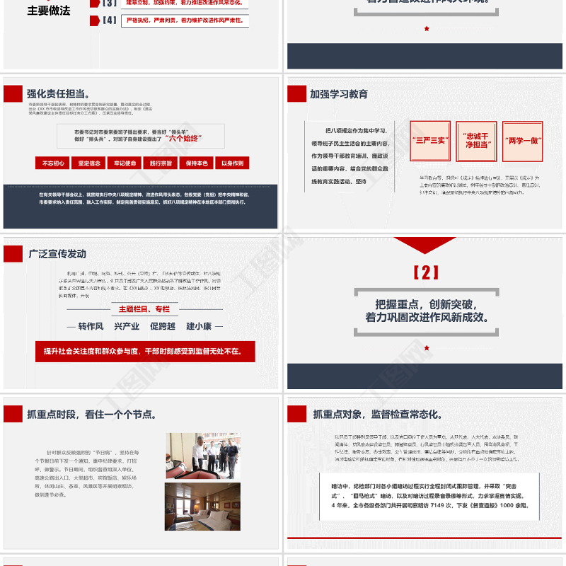 工圖網提供加強黨的作風建設糾四風內容完整PPT模板供會員免費下載。更多精彩黨課PPT素材,盡在工圖網。