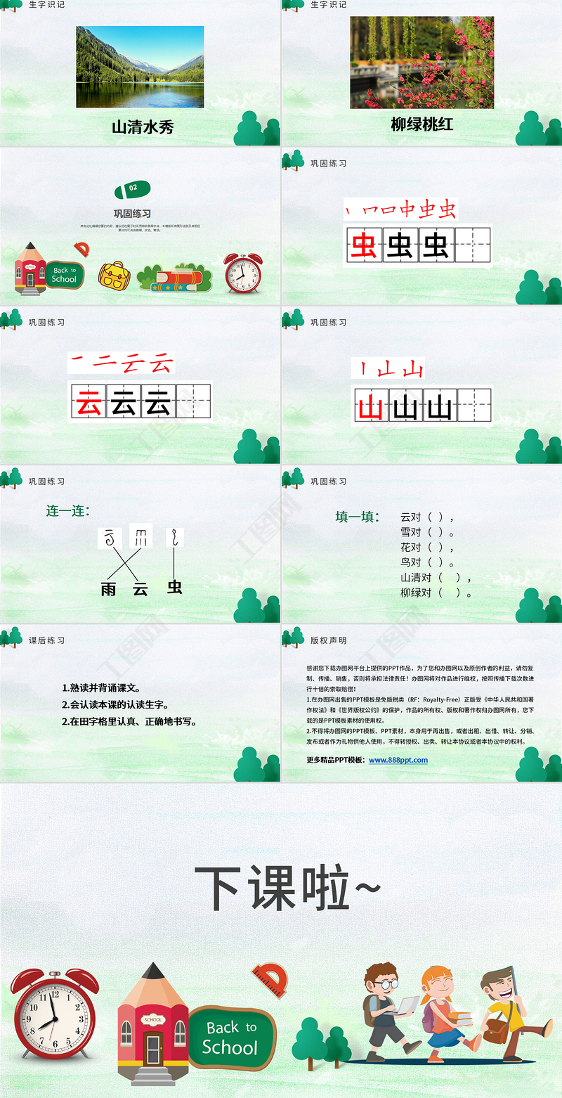 課后練習(xí)1.熟讀并背誦課文。2.會認讀本課的認讀生字。2.在田字格里認真、正確地書寫。