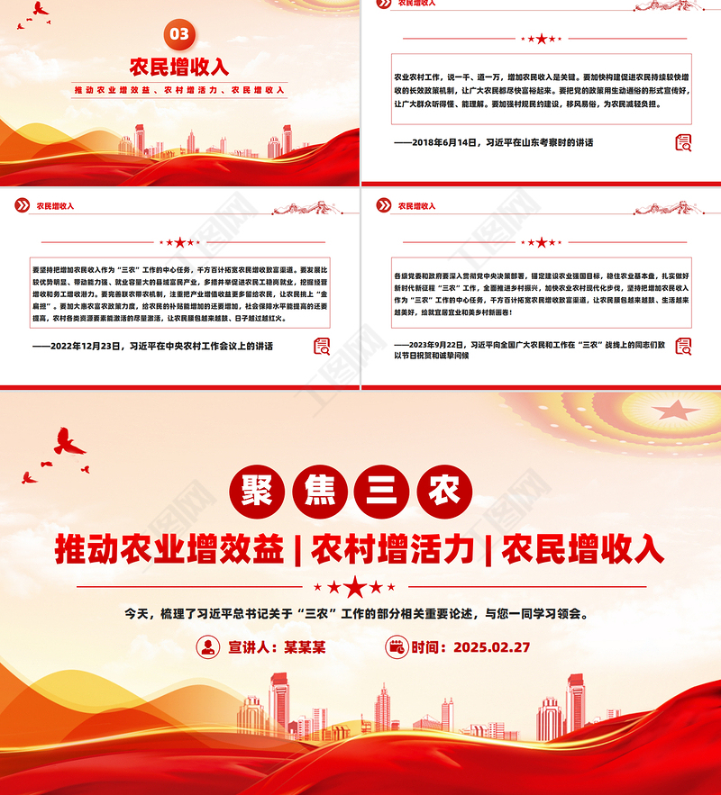 工圖網提供聚焦三農PPT推動農業增效益農村增活力農民增收入總書記重要論述課件供會員免費下載。更多精彩黨課PPT素材,盡在工圖網。