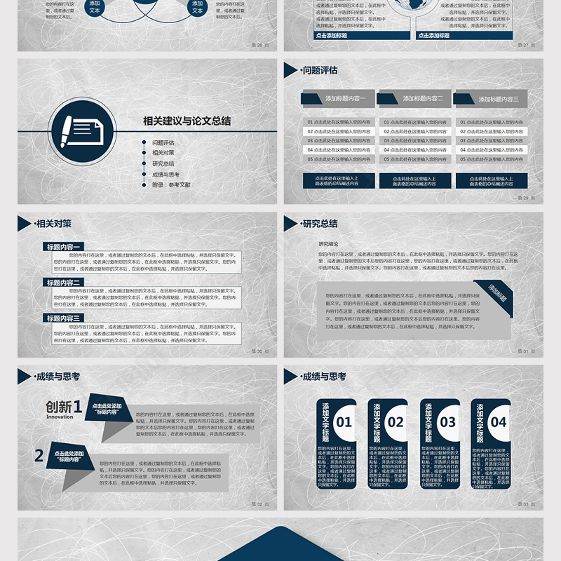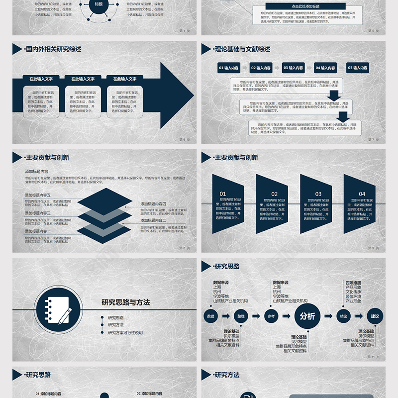 2021年藏藍筆記本分割成畢業論文答辯PPT模板包含