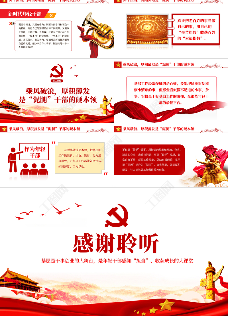 爭做基層的泥腿干部PPT紅色黨政風2022年黨支部黨員培訓專題課件模板下載