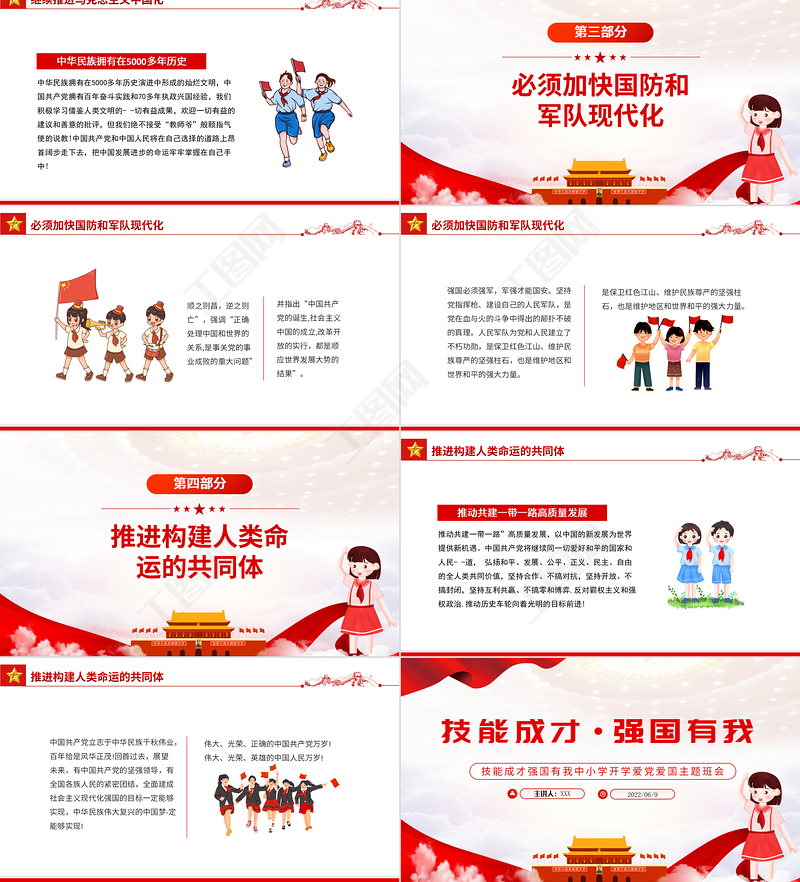 技能成才強國有我PPT黨政風中小學生開學愛黨愛國主題班會課件模板 Array