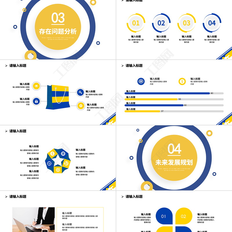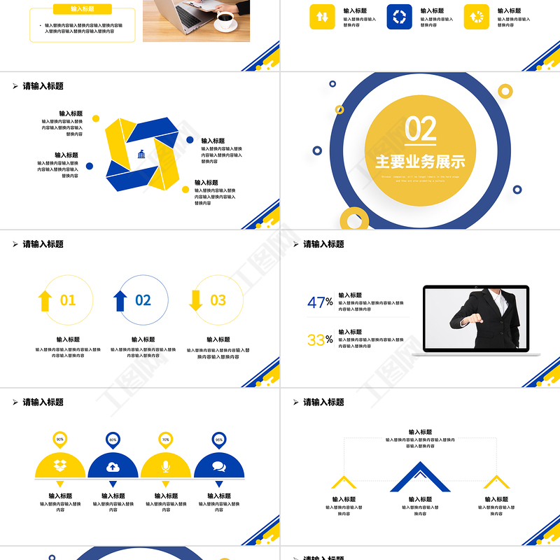 工圖網提供2026藍黃撞色工作總結計劃PPT工作總結工作計劃工作匯報通用模板供會員免費下載。更多精彩黨課PPT素材,盡在工圖網。