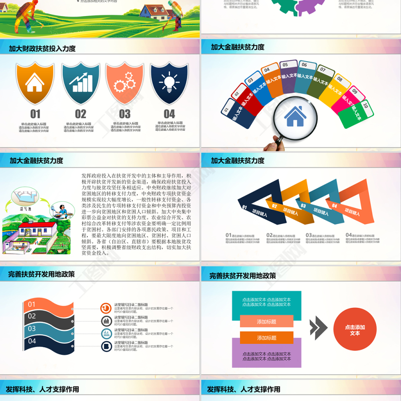 原創新農村精準扶貧開發脫貧攻堅戰PPT模板-版權可商用